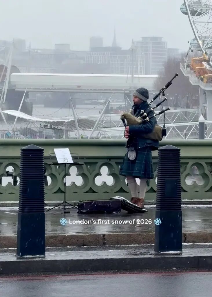 伦敦的初雪总是来得突然,却足以让整座城市慢下来。白色短暂覆盖街道、屋顶与人群,也放大了这座城市独有的湿冷、克制与温柔。雪不会解决生活的问题,却让人记住那些微不足道却真实存在的瞬间——通勤被打乱、脚步放慢、在异乡第一次真正感受到“生活在这里”。