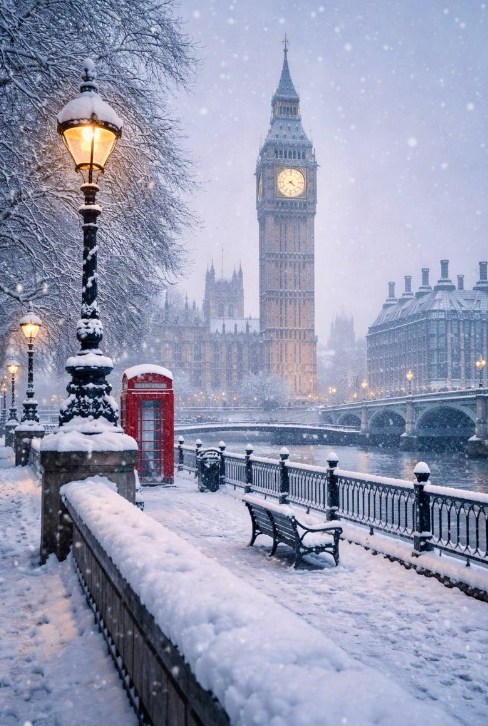 有人后来离开了伦敦,去了阳光更充足的地方,却在很多年后,仍会因为一张雪中的伦敦照片而心头一紧。不是因为雪有多美,而是因为那段生活,已经悄悄被封存在那一层白色里。