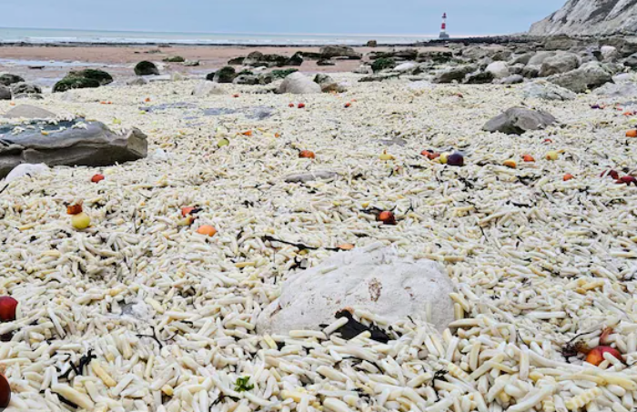 说实话,什么稀奇古怪的冲上岸东西都听过——从乐高积木到橡皮鸭,从威士忌酒桶到二战时期的炮弹。但就在今天,一个让人哭笑不得的新闻刷屏了:整个东萨塞克斯郡的海滩,从比奇角到伊斯特本,竟然被数百万根薯条给埋了。