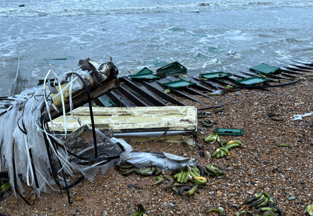 其实这已经不是最近第一次“加餐上岸”。就在两周前,西萨塞克斯郡塞尔西附近的居民才目睹了一场“香蕉海啸”——整箱整箱的香蕉从货轮掉进海里,被洋流推到岸边,黄澄澄地铺满沙滩。