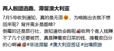 然而,很多人宁可不要这二十万人民币的押金,也要非法滞留澳大利亚。而对于旅游公司来说,其实这二十万人民币也根本弥补不了他们因为脱团而造成的重大损失。