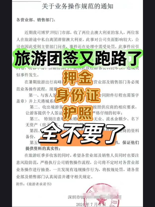 事实上,有网友爆料出国例如去澳大利亚跟团旅行有时还需缴纳押金,押金从几万人民币到二十万人民币不等。