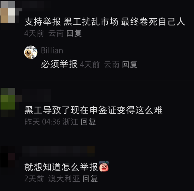 比如,有一位网友是这么说的:黑民和黑工举报地方都不一样吧?